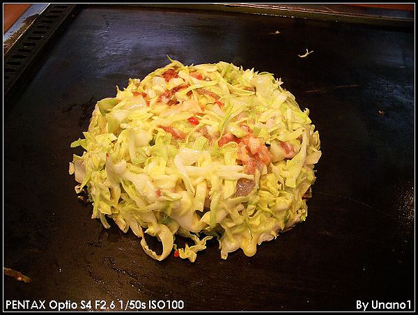 (煎得還不錯吧?當然是店員幫我們煎的囉!如果我自己來大概是食材到處散落焦黑, 醬汁四溢吧!)