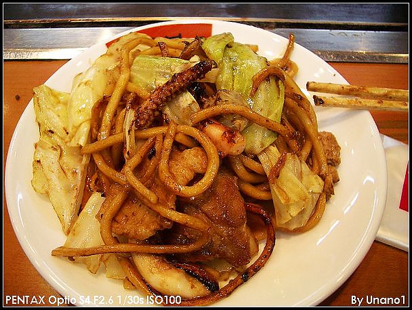 [晚餐帶媽媽一起去吃鶴橋風月, 這次我們仍然點おすすめ的風月焼き(日幣980), 還加點焼きそば(日幣600)]