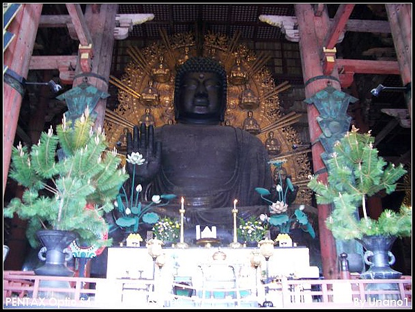 (聞名的東大寺大佛像, 虔誠地向祂祈求賜給家人平安)