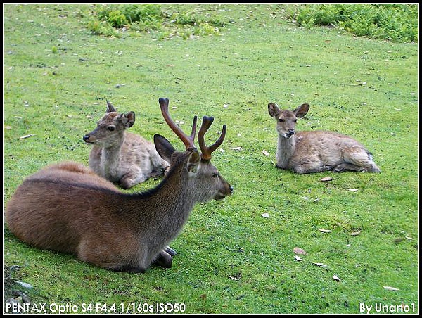 (也許時間太早, 這些鹿的"營業時間"還沒到, 所以牠們也都懶洋洋地坐在草地上呆呆地看著我們, 都沒有來搶遊客食物)