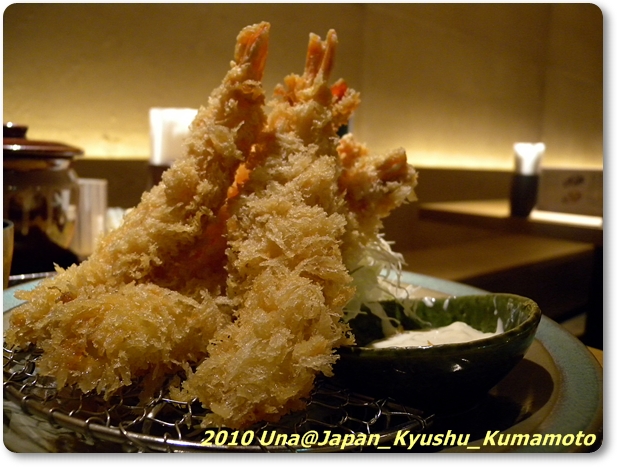 最後上菜的是我點的『海老かつ膳』(確實菜名已經不記得了,真後悔沒抄下來)。剛剛已經被大蝦子嚇到,這五尾送上來我有比較沒有這麼驚訝。不過,我也從來沒吃過整份海老定食共有五尾的,竟然還能堆得像營火,通常普通餐廳給個兩尾就了不起了吧!?雖然尺寸沒有像剛剛『名物 かつくら膳』這麼巨大,但是不論口感或鮮度,都一樣超出水準。