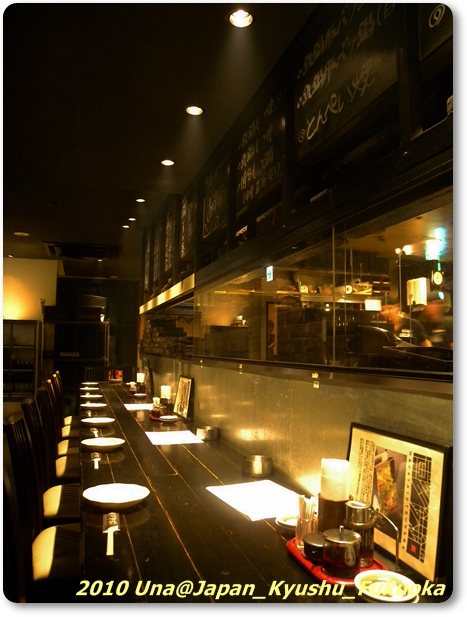 (一個人,當然又被發配邊疆-吧台位,可以看見廚房裡面煙霧瀰漫,少年師傅忙進忙出)