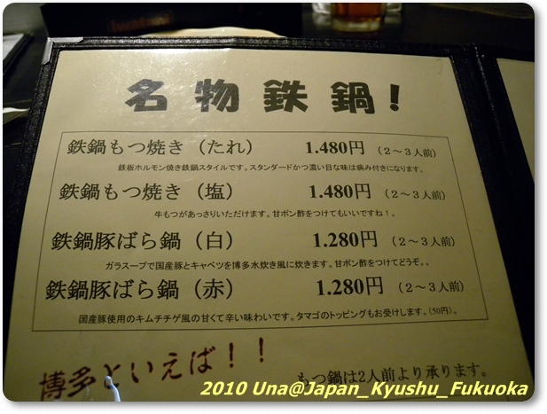 這天,除了早餐以外,我吃了『宇宙軒』冷擔擔麵、『MISTER DONUTS』夏季限定抹茶甜甜圈(還很貪心三種抹茶都點)、『一風堂』白丸口味拉麵,現在又要來吃今天的第五頓餐。我相中了YODOBASHI對街的『博多鉄鍋 本店』,為的是要品嚐福岡美食-『もつ鍋』,就是所謂的『內臟鍋』。